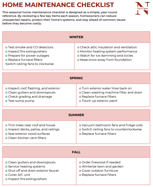 Over time, small, consistent efforts make homeownership more predictable and less stressful. This checklist is meant to support that rhythm and help homeowners feel confident they are taking care of their home properly.